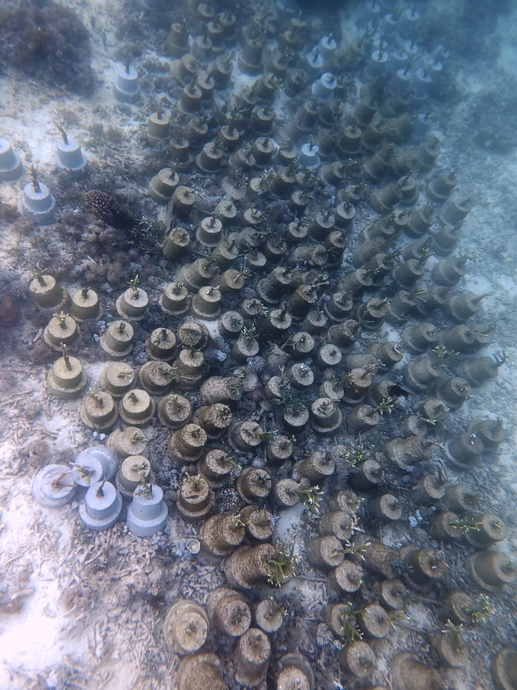 开始下去的时候我头皮发麻,这什么密集恐惧症要命的东西?仔细看才明白是人工在养护的珊瑚。就在我来的前一天,这里放了牌子。
