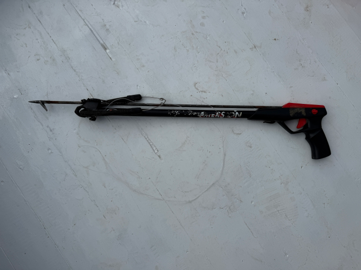 先看一下鱼枪,这东西贼简单,但向导居然还是找朋友借的,而且都锈了还在船上磨了半天,我都怀疑到底能用不能用。