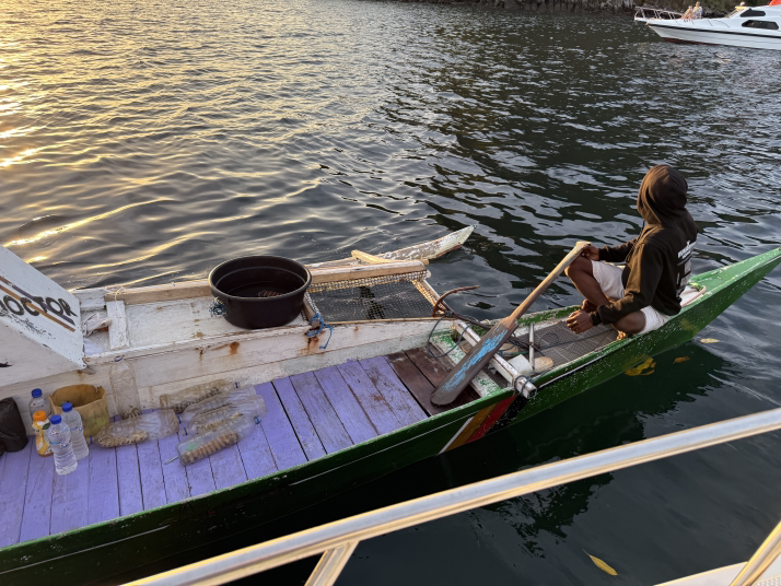 第二天,通过酒店服务员联系,包了一个本地船出海,就是这条,看着不错。价格页可以,大约5千一天。