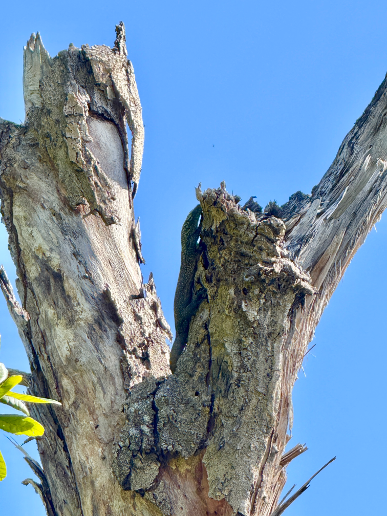 小的科莫多龙是会爬树的,这个我也是涨知识了。这次运气也不错,直接就看到了。它爬树的一个原因是为了晒太阳,还有就是因为它还小,所以要躲避敌人,长大了就无敌了。