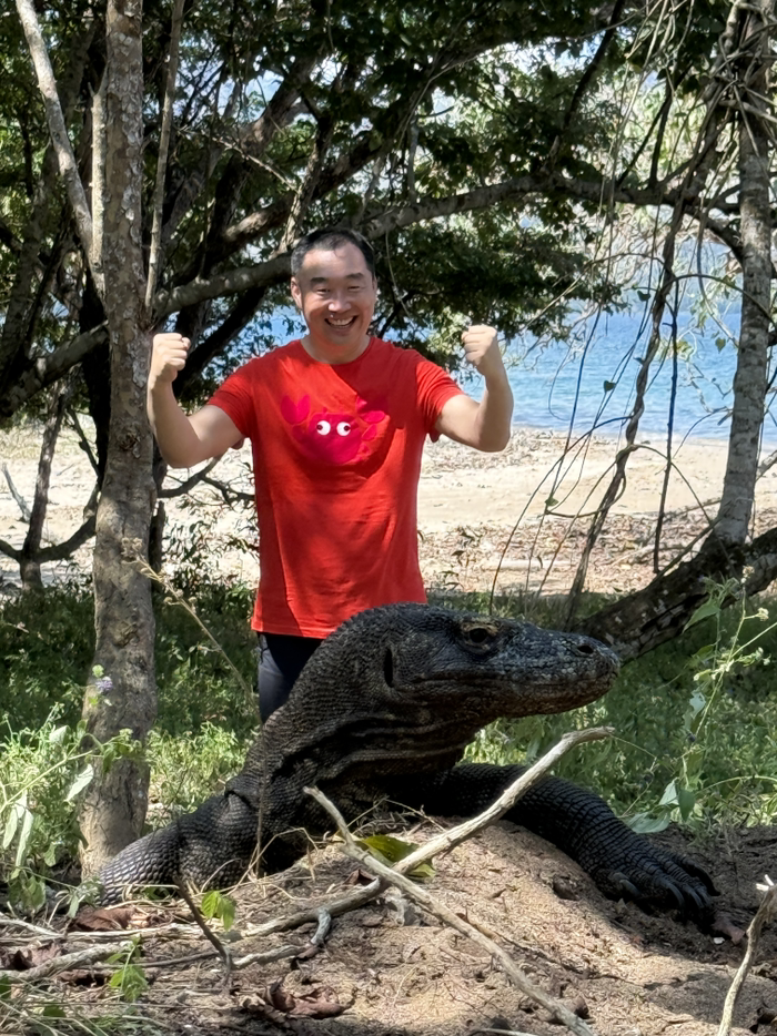导游拍照很有一手,我离这个科莫多龙其实有5米,拍出来跟我贴它屁股似的。