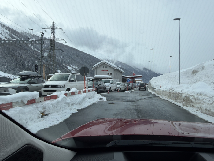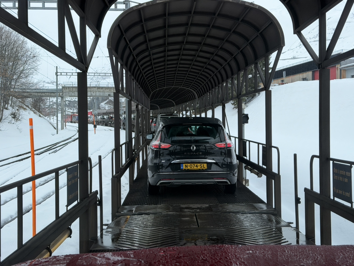 只能,坐火车了。对,开着汽车坐火车。之前开汽车坐轮船我干过,坐火车还是头一遭。之前没明白,兜兜转转浪费了一个多小时,才等到下个批次上火车。哦,这个要收费的,好像几十欧,不贵。