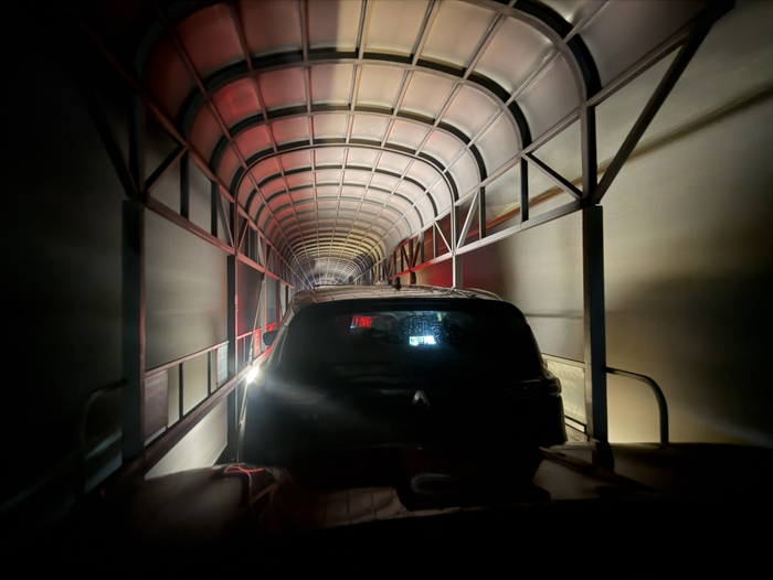 到站了,整个行驶时间大概半小时左右吧。这边也是有大量汽车等着上火车,拉到山的另一头。