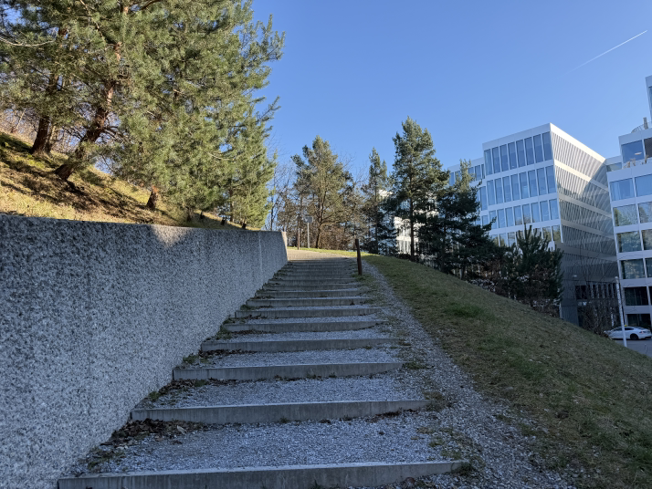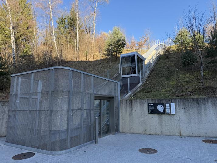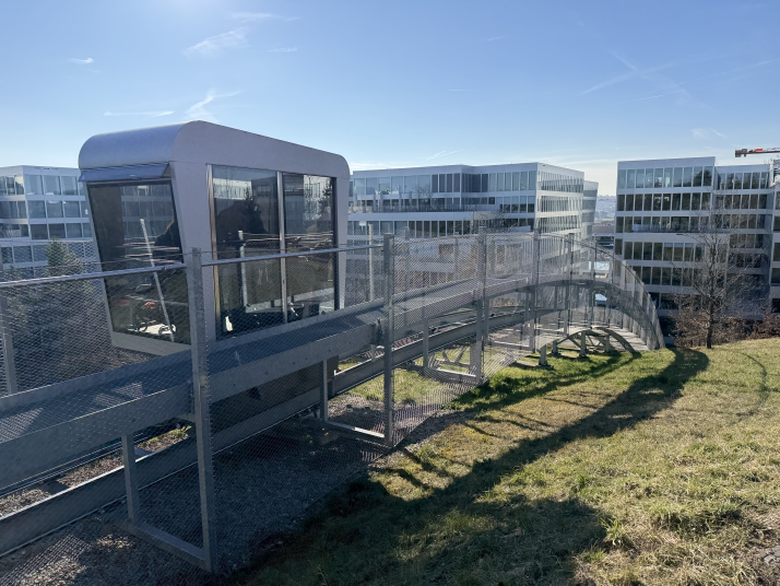 就这么几步路,瑞士人还整了个异形电梯,可以从坡下拉到坡上。